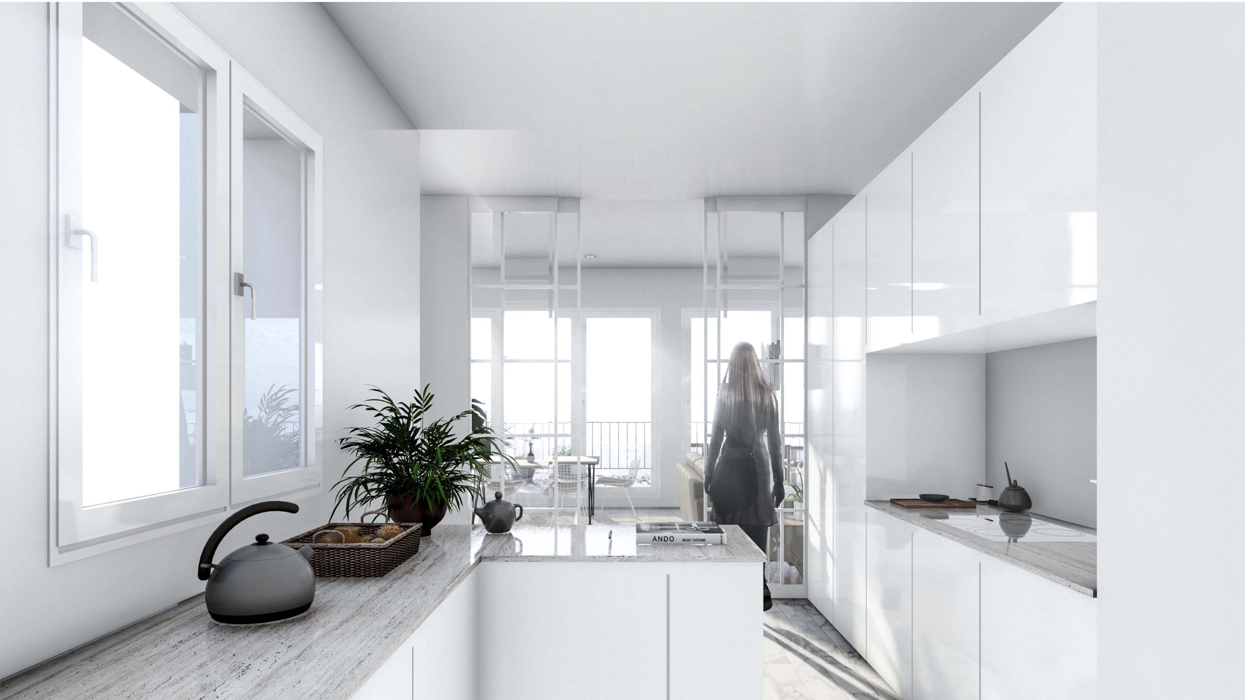 By IRU·DI Architectural Visualization / January 30, 2024 FERNAN GONZALEZ HOUSE RENOVATION Residential Location: MADRID, SPAIN Year: 2021 Design: ESTUDIO HAGO ARQUITECTURA Client: PRIVATE Status: FINISHED Gallery: Living room and dining area. Access to terrace Open and luminous spaces Visual connections between spaces Kitchen and cooking area Continue ExploringIf you wanna continue exploring the projects we have done press the following button and go back to our work pageGO BACK TO WORK PAGE