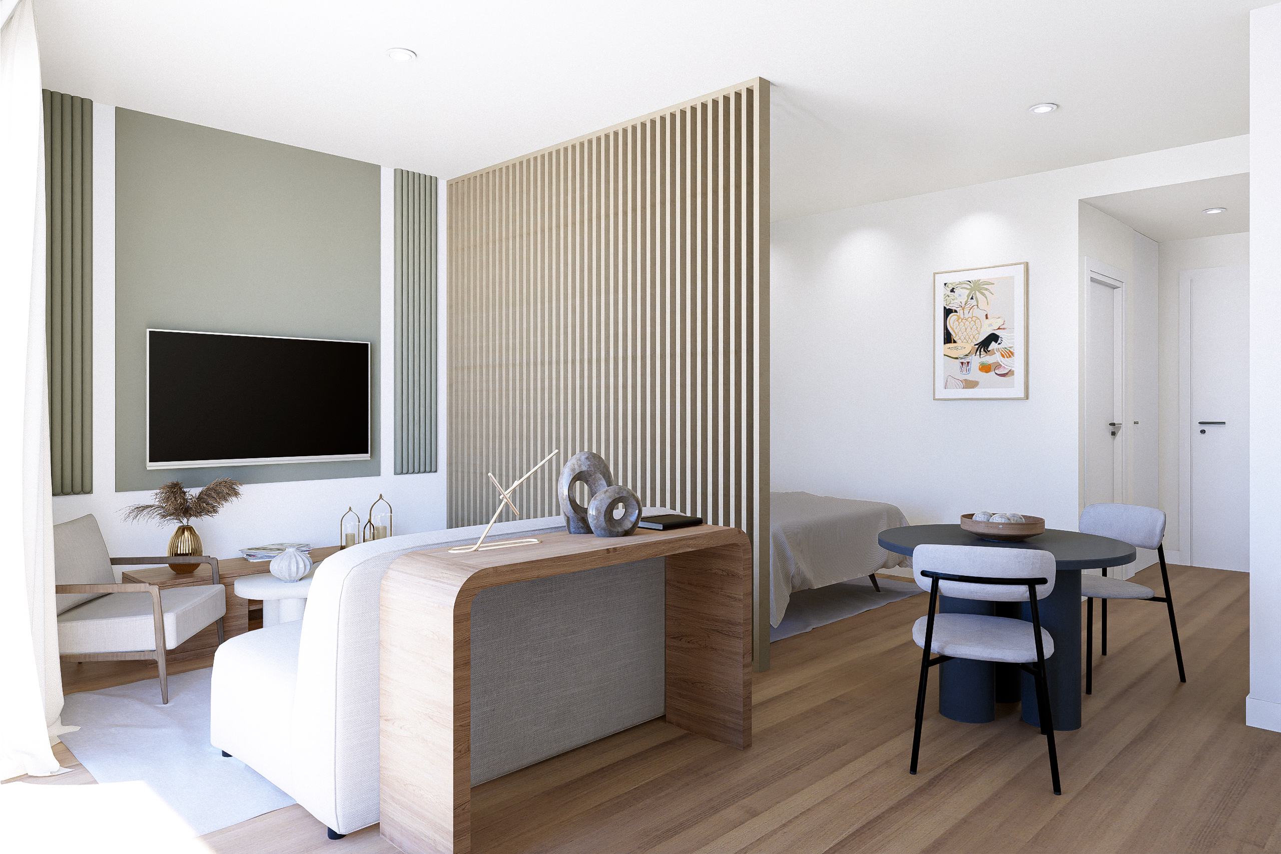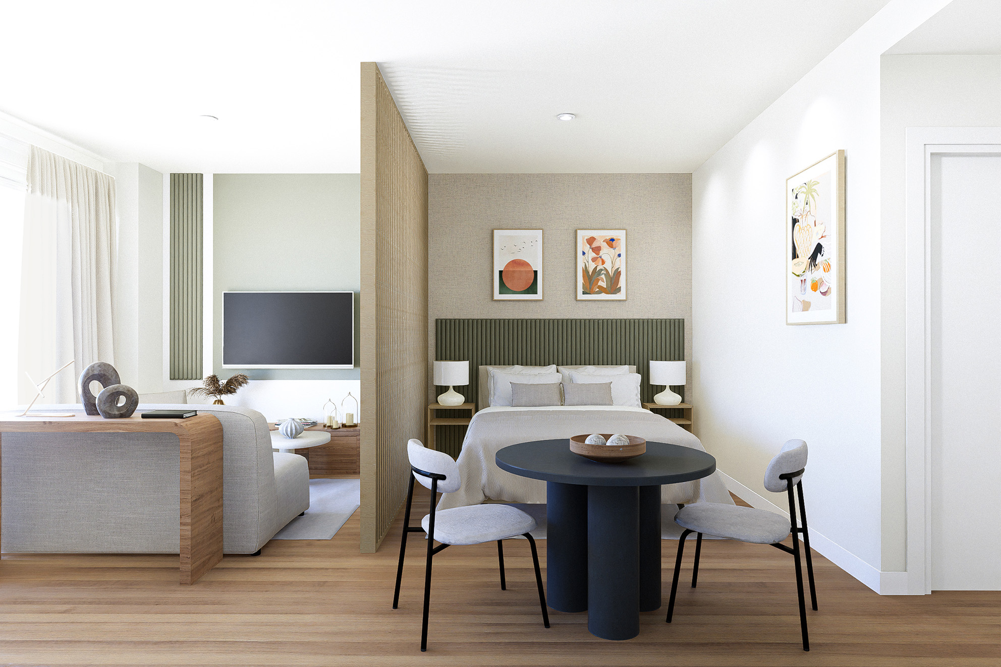 Promotion A. Studio design. Living room and bedroom