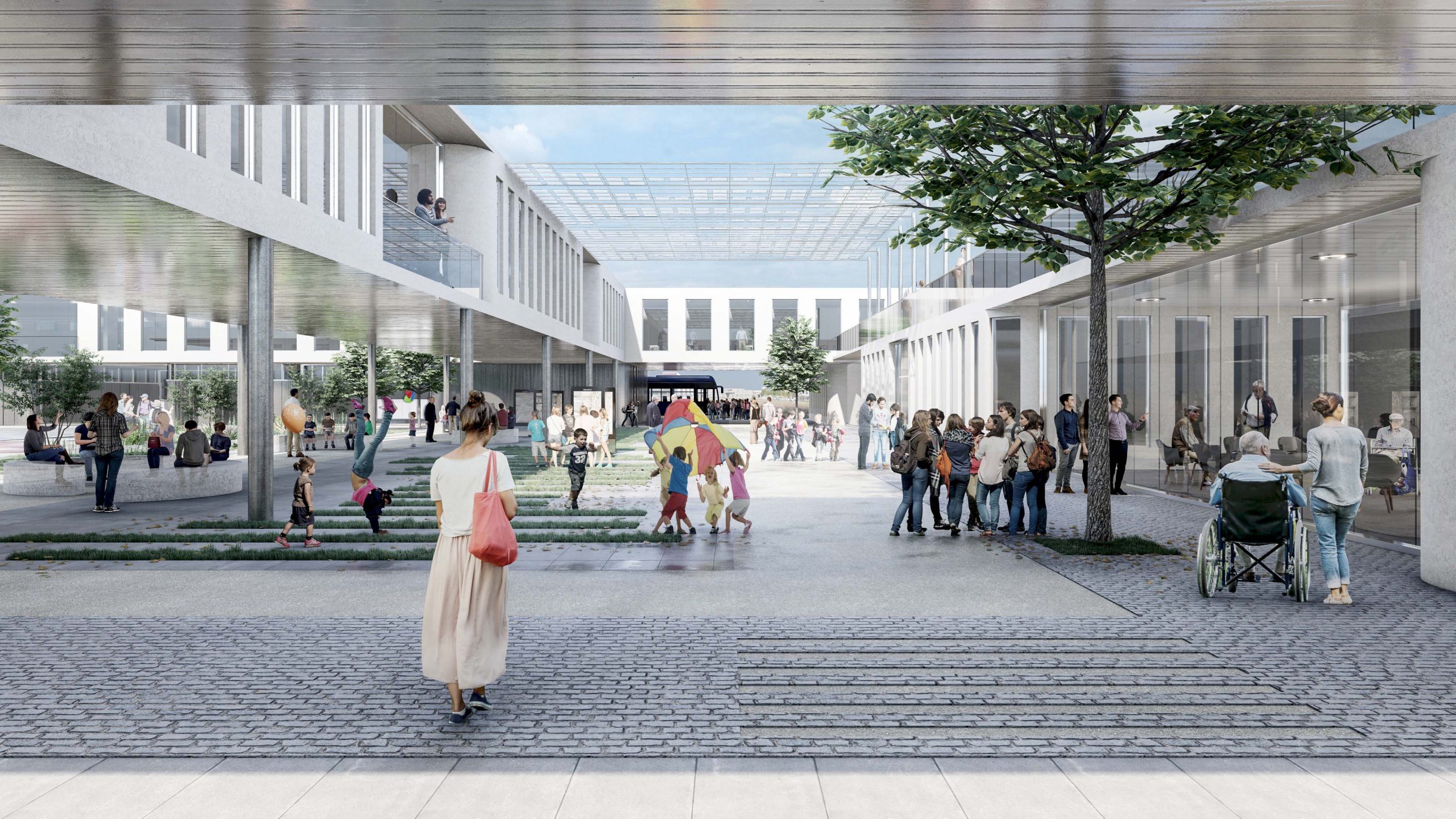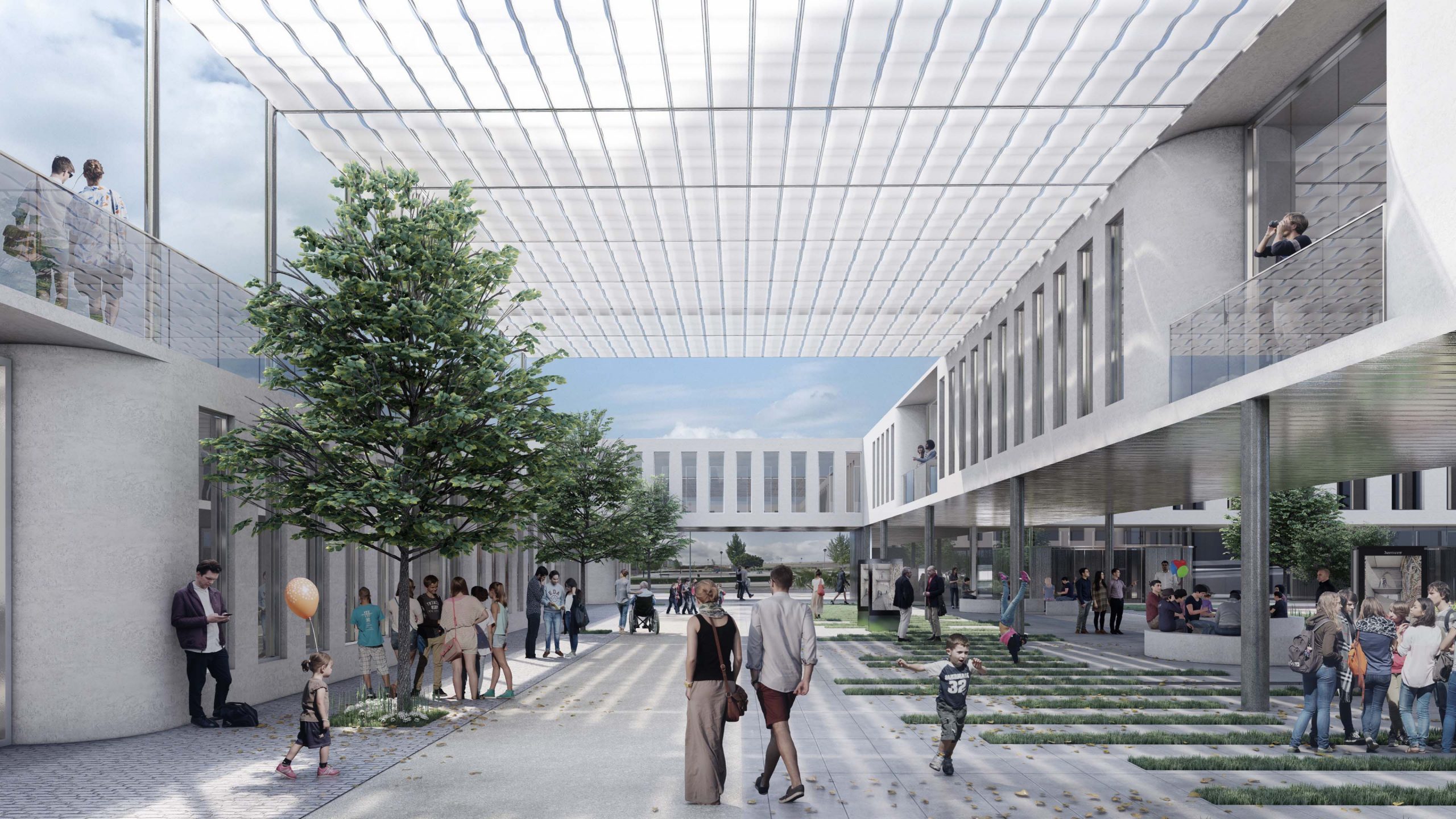 Exterior view. Entrance courtyard and urban gardens