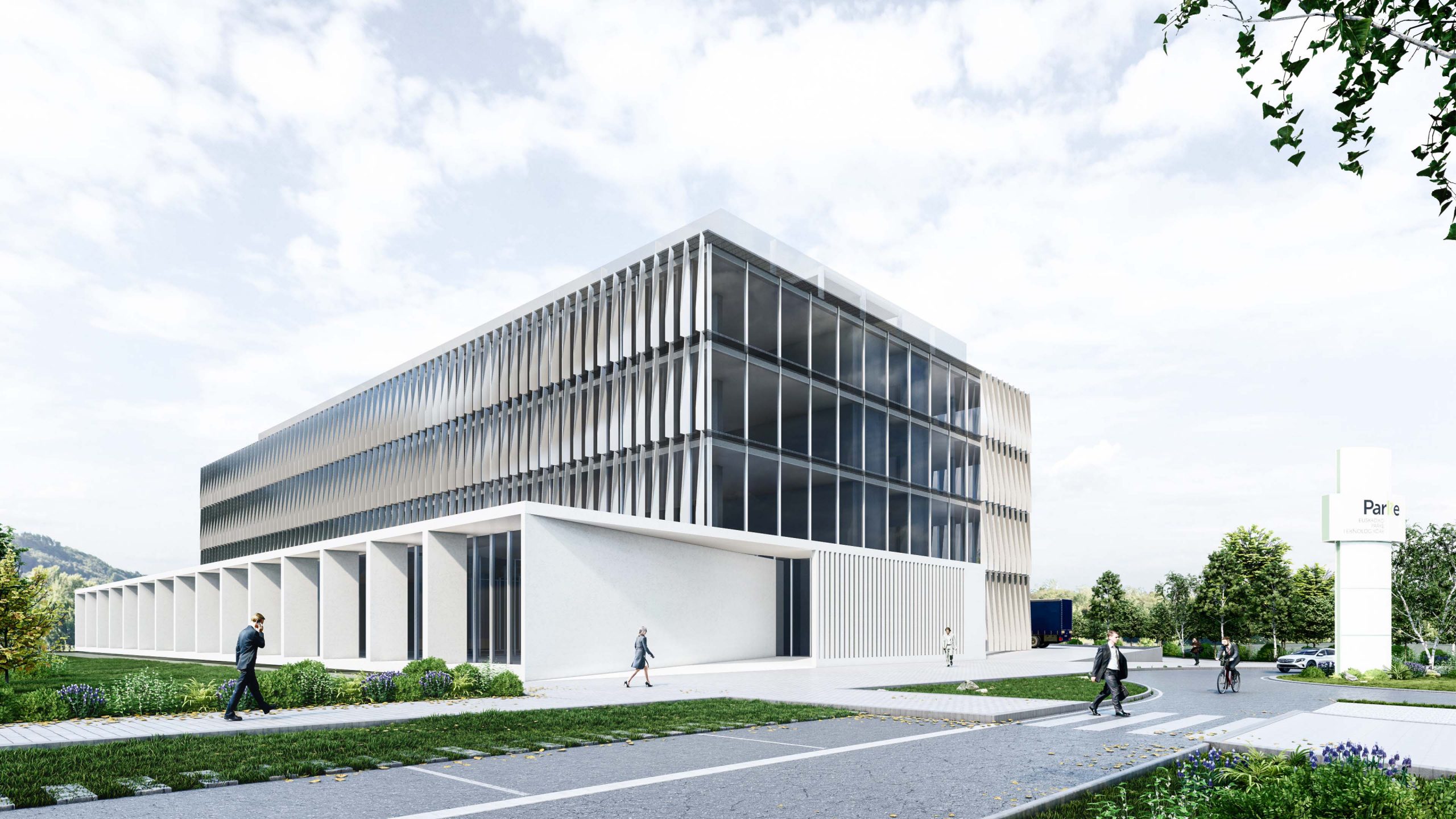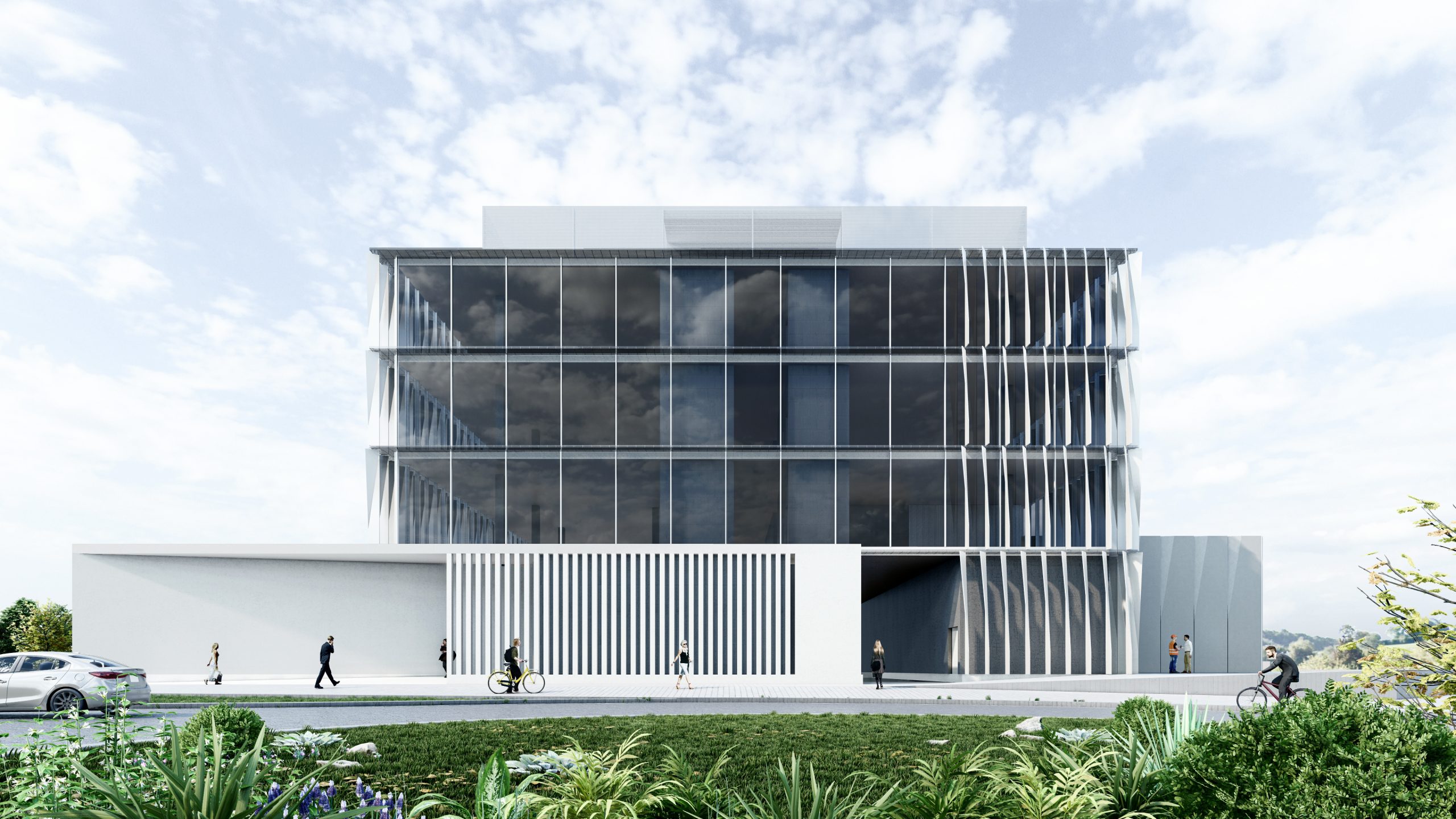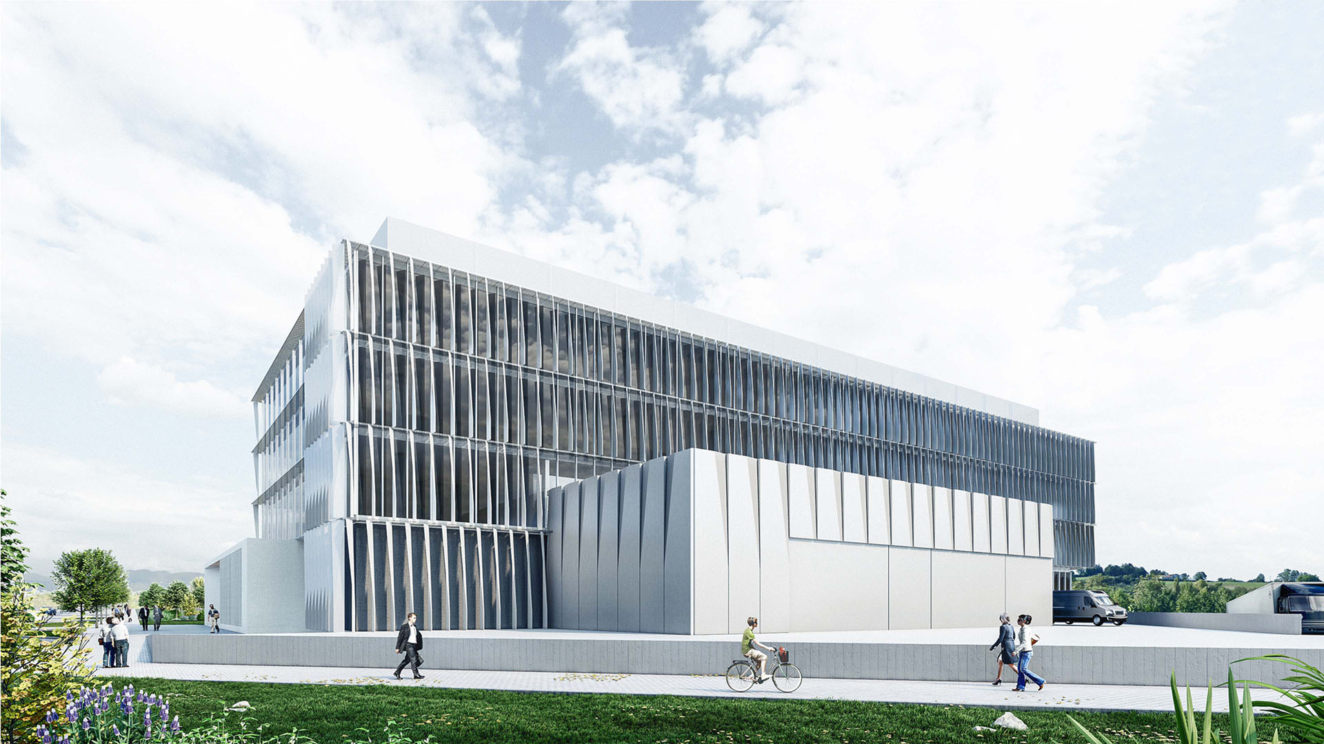 Exterior view. South and east façades. Bicycle paths to arrive to the workplace