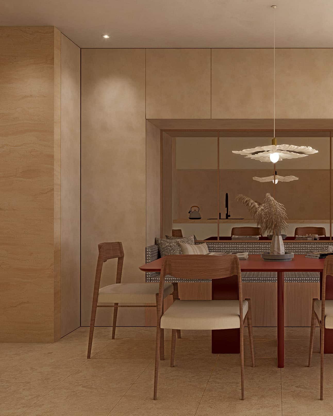 By IRU·DI Architectural Visualization / October 22, 2024 VALENCIA HOUSE Residential Location: VALENCIA, SPAIN Year: 2024 Design: JUAN BENGOA INTERIORISMO Y ARQUITECTURA Client: PRIVATE Status: PROJECTED Gallery: Interior view. Dining room. Detail of material combinations Earthly textures to make the living spaces warmth and cozy Bringing the sunlight into the environment Interior view. Dining room and transition to living room Continue ExploringIf you wanna continue exploring the projects we have done press the following button and go back to our work pageGO BACK TO WORK PAGE