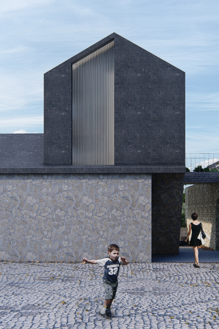 OPTION B. Exterior view. Frontal Façade and pedestrian access